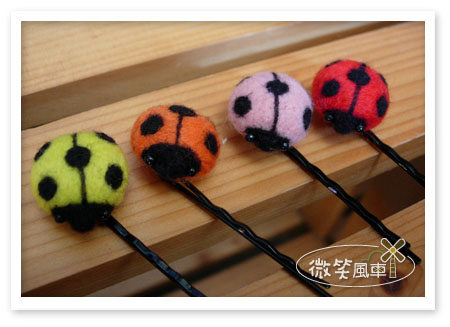 >> 髮飾/髮束/髮夾 >> 羊毛氈手創◎彩色瓢蟲髮夾